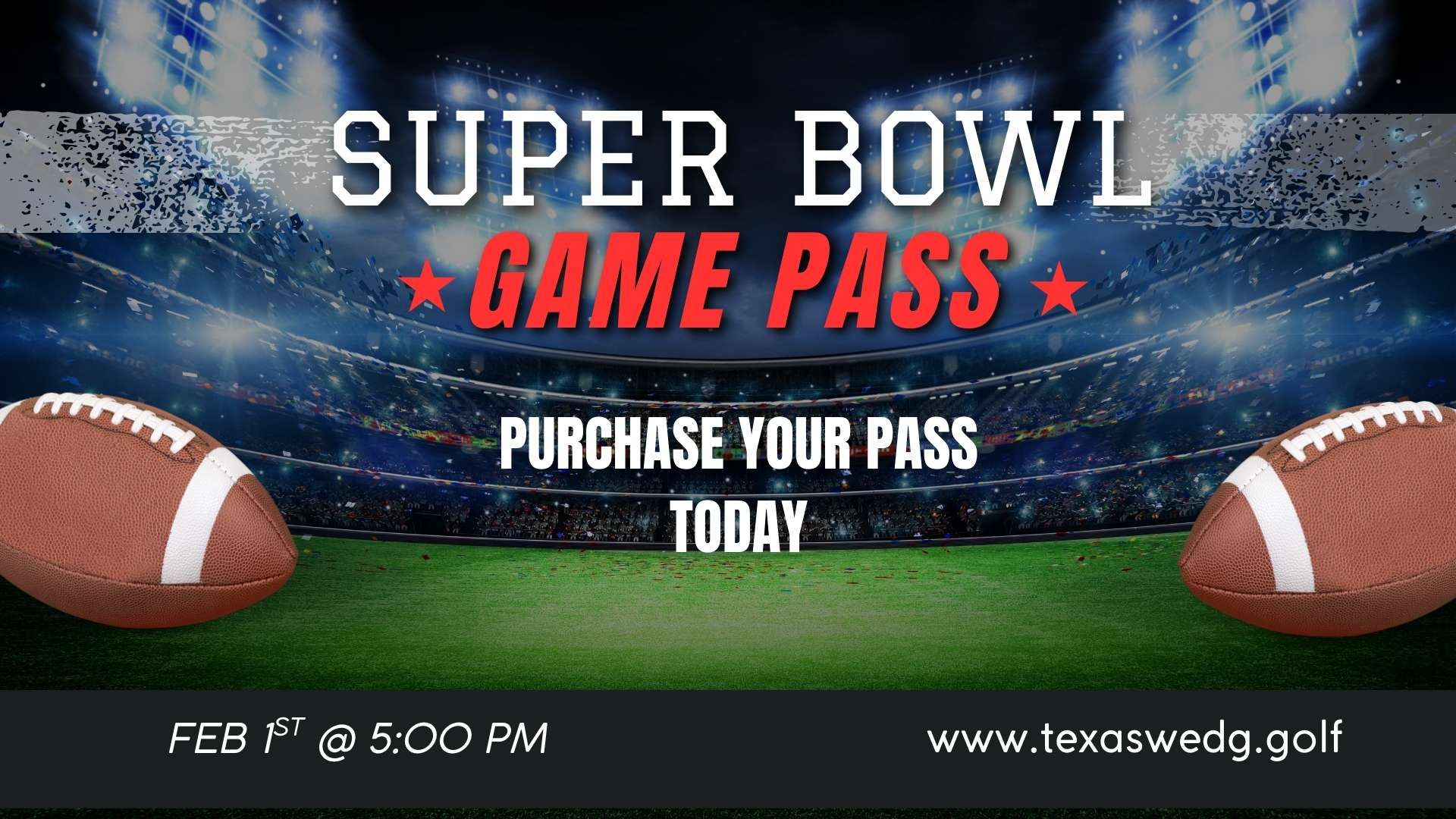 Lock in a reserved bay for the Super Bowl at Texas Wedge.